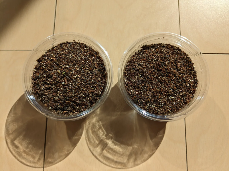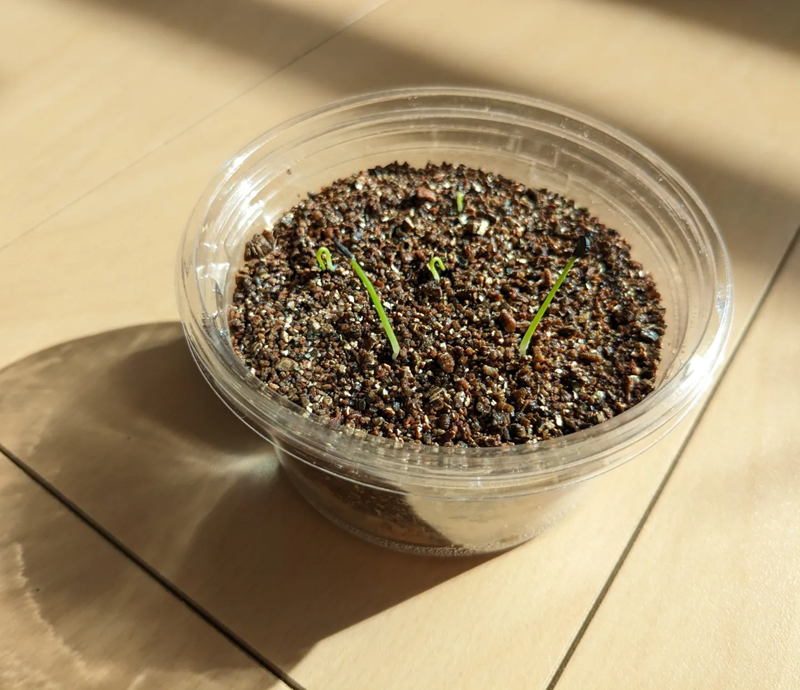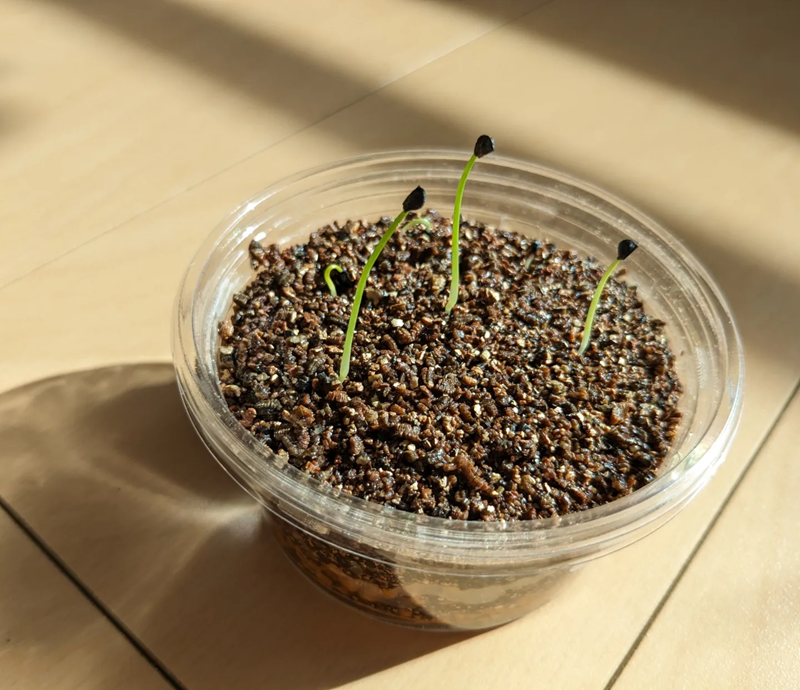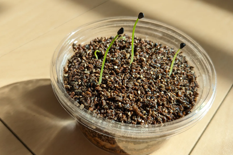 土はバーミキュライトのみ、容器はプラカップを2枚重ねて使用しています。土と容器はダイソーで購入しました。